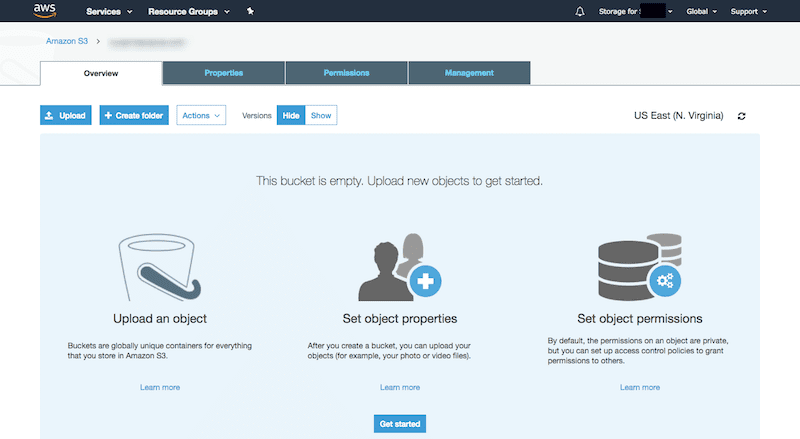 Inside the S3 dashboard, you’ll be asked to create your first “bucket”. If you scroll down just a tad bit, you’ll find high-level instructions of how this works: